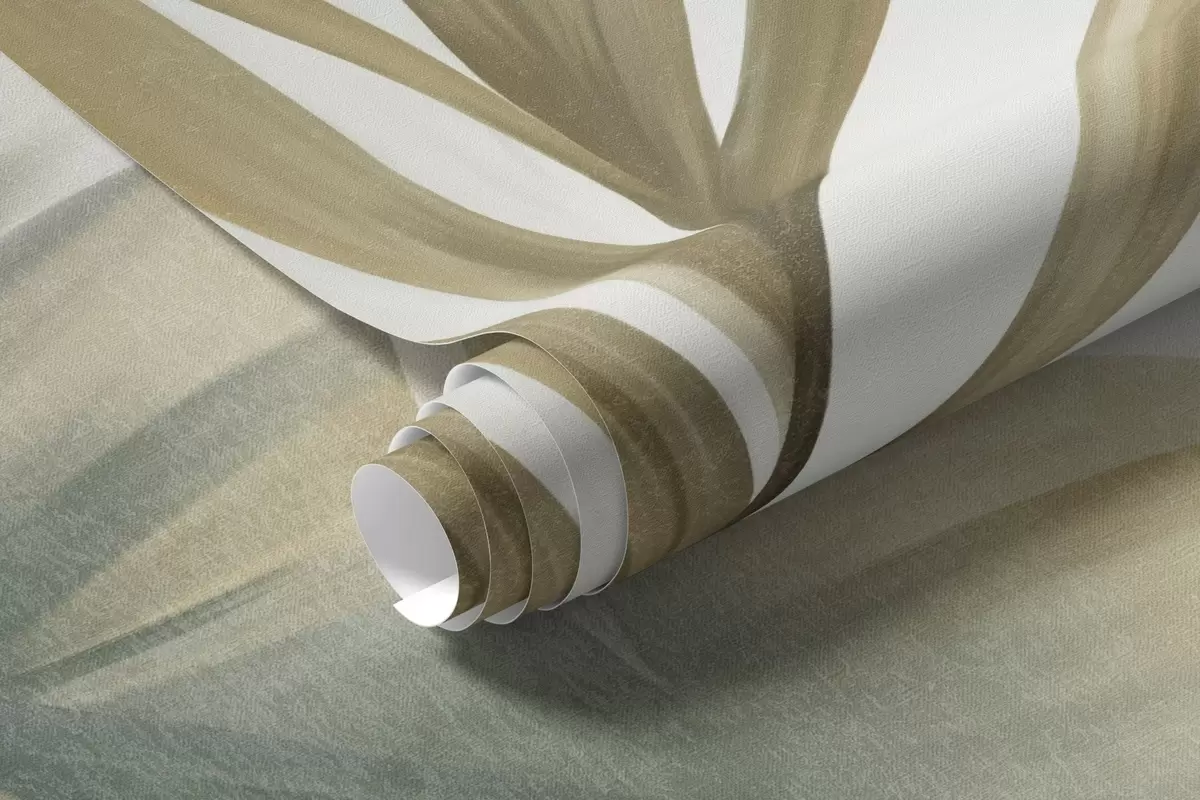 Fotomurales Hojas tropicales grandes y con textura en tonos apagados de verde y beige, un ambiente selvático Nr. w09820