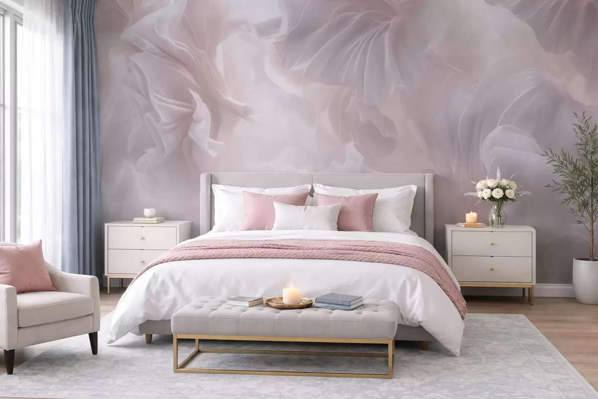 Fotomurales Formas florales abstractas con pétalos ondulados en tonos pastel Nr. w09841