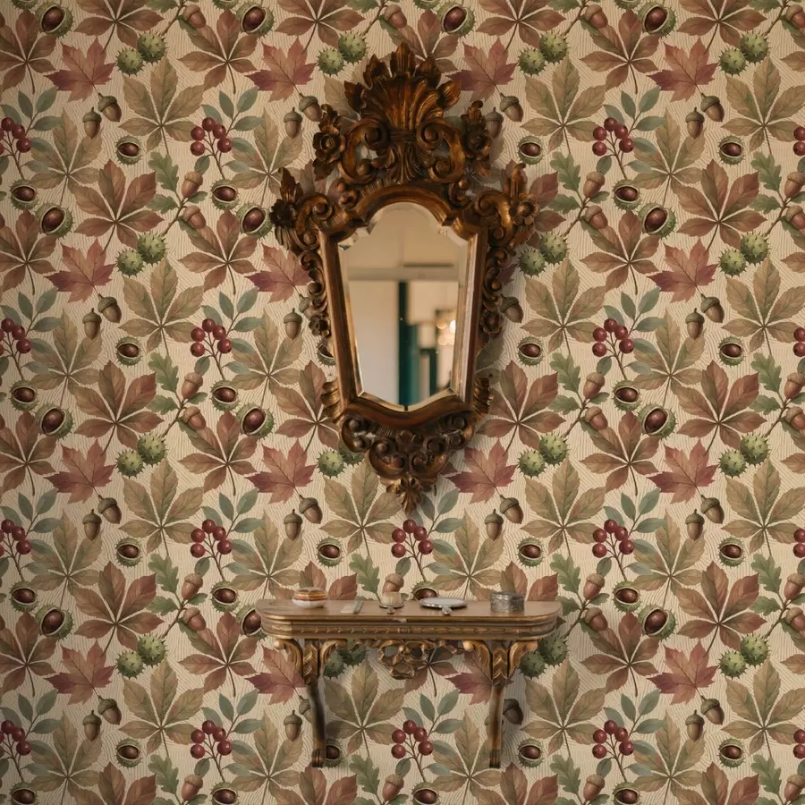 Follaje decorativo en una cálida paleta de colores ocres y verdes