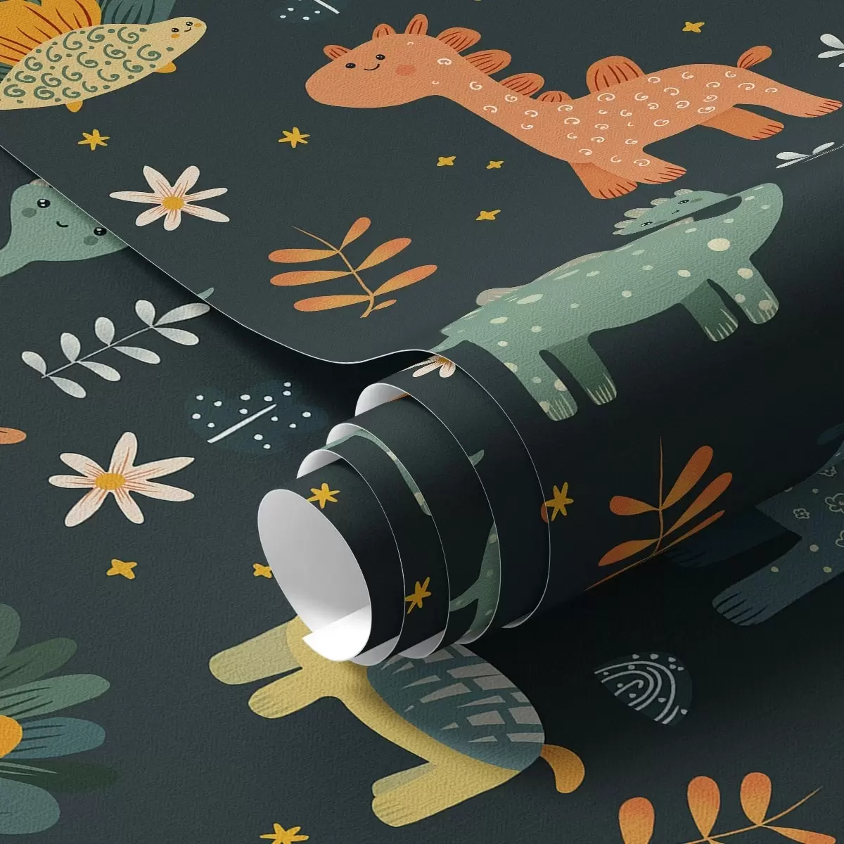 Papel pintado Divertidos dinosaurios en colores pastel sobre fondo oscuro Nr. a00125v2