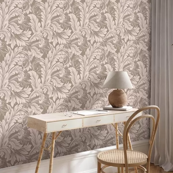Papel pintado Hojas color crema sobre fondo marrón Nr. a00135v3