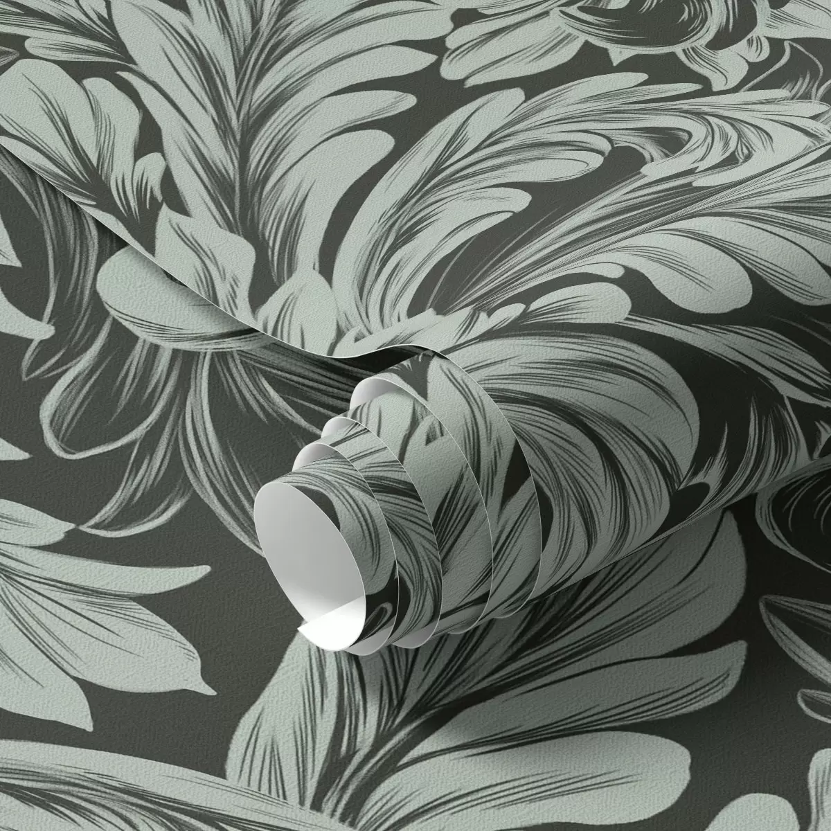 Papel pintado Fondo verde oscuro con rizos color menta Nr. a00135v4