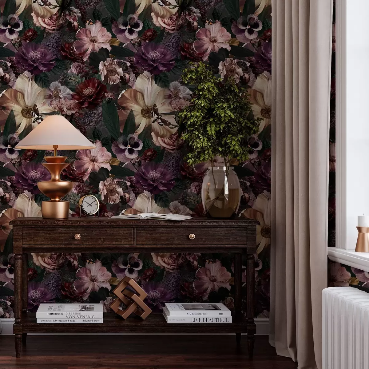 Papel pintado Estampado floral artístico en colores oscuros Nr. a00147