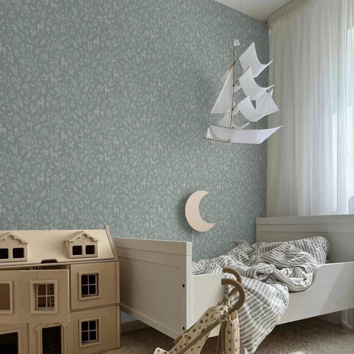 Papel pintado Animales y plantas escandinavos sobre fondo menta Nr. a00149