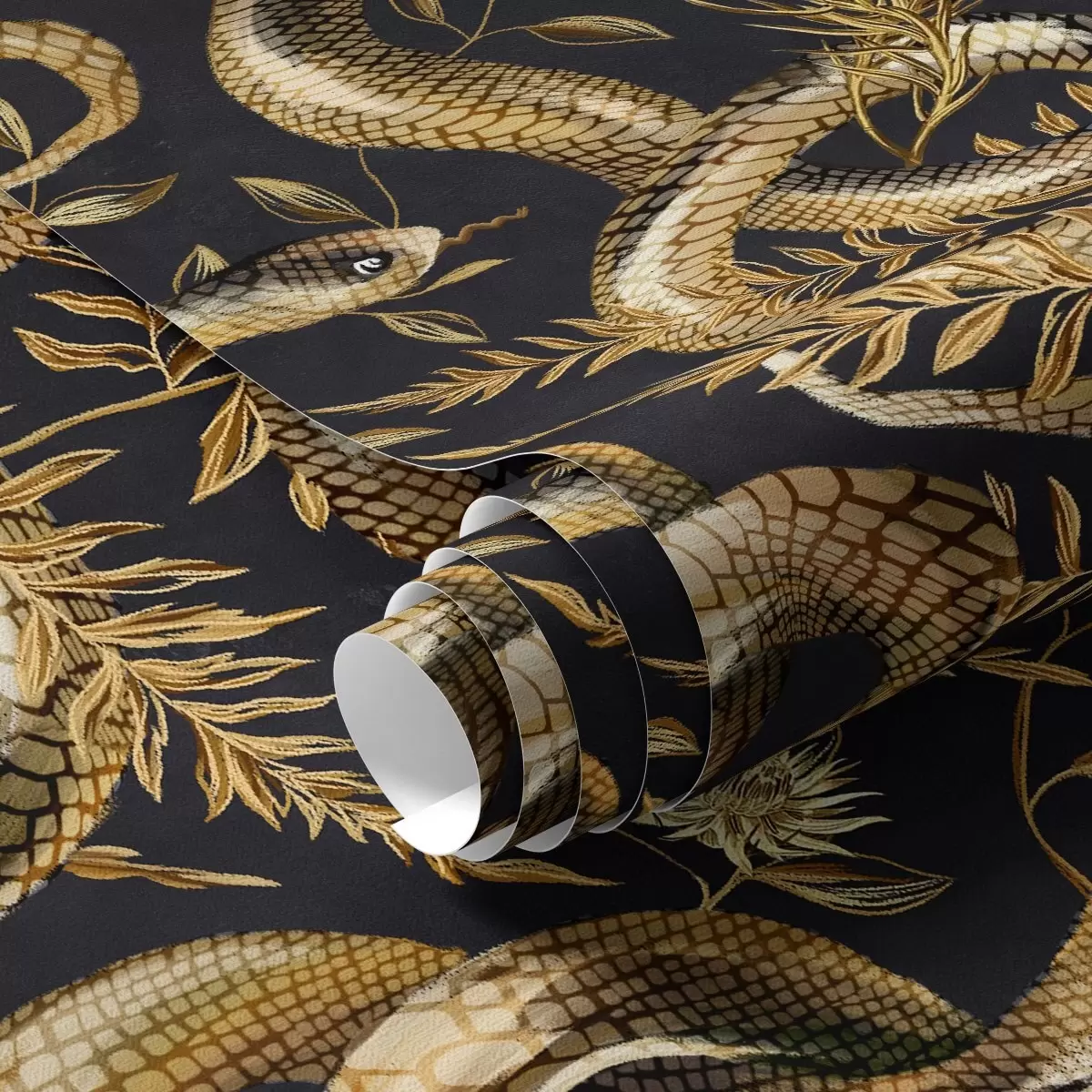 Papel pintado Serpientes y flores sobre fondo oscuro Nr. a00158