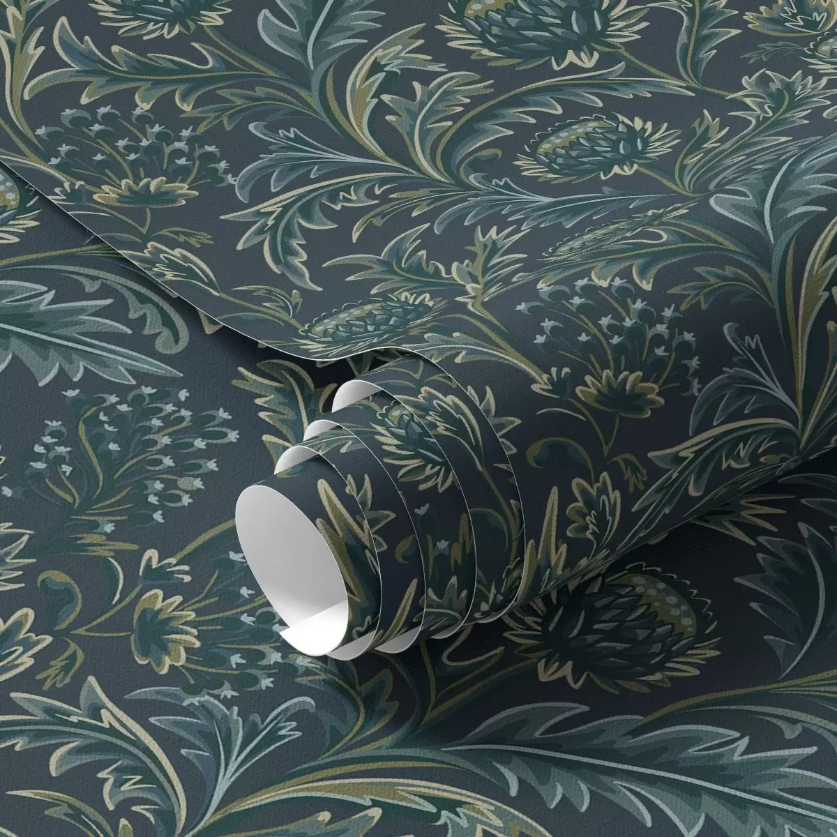 Papel pintado Motivo floral verde oscuro con alcachofas Nr. a00186
