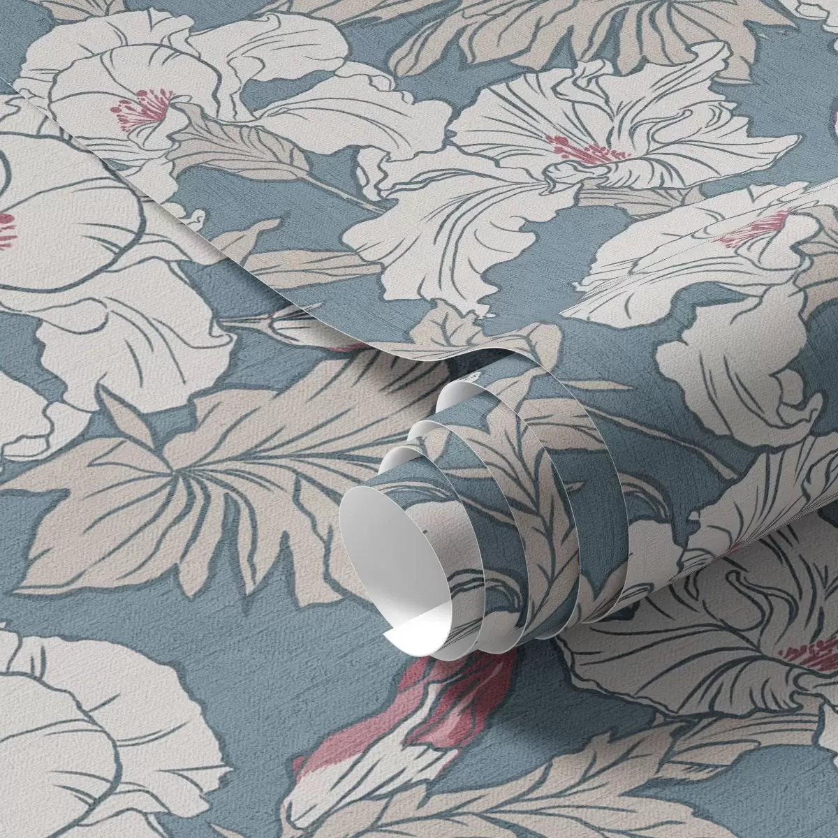 Papel pintado Hibisco blanco sobre fondo azul con dibujo de contorno Nr. a00272v1