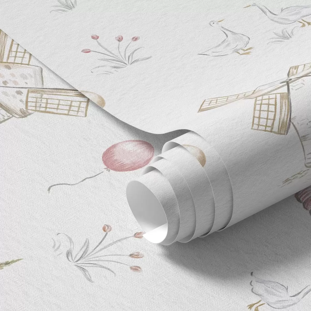 Papel pintado Ilustraciones infantiles: Perro, patos, pelotas, molino Nr. a00278
