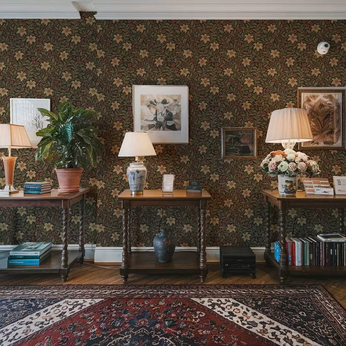 Papel pintado Fondo oscuro con flores amarillas y rojas de estilo Art Nouveau Nr. a00293