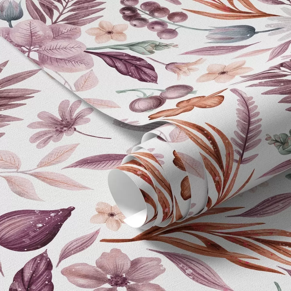 Papel pintado Bayas, flores y hojas brillantes en estilo acuarela Nr. a00298