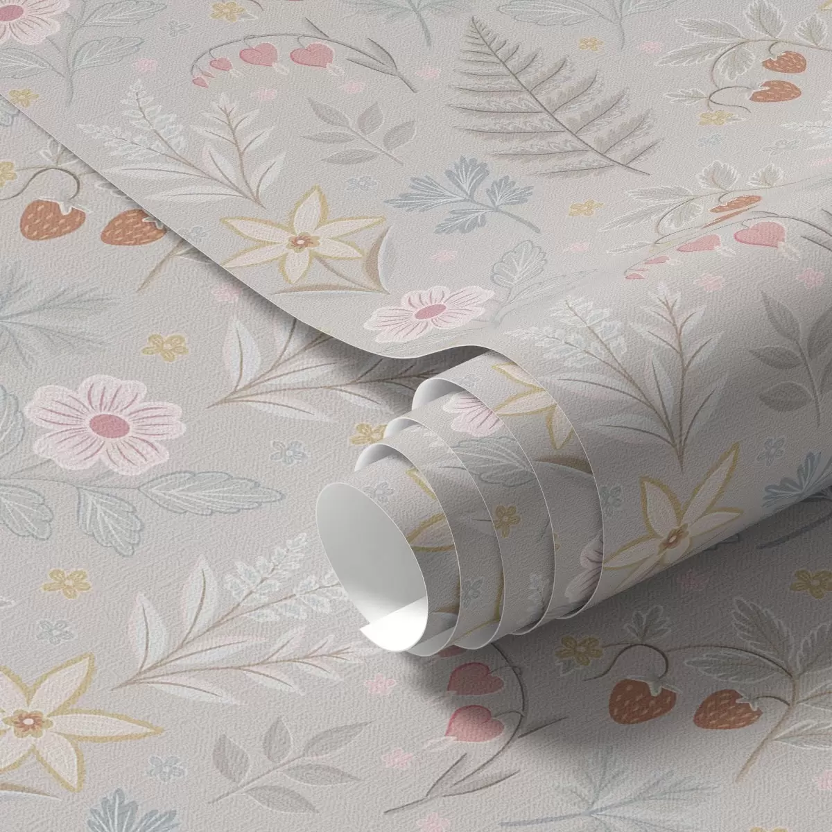 Papel pintado Flores y bayas pastel sobre fondo gris claro Nr. a00406