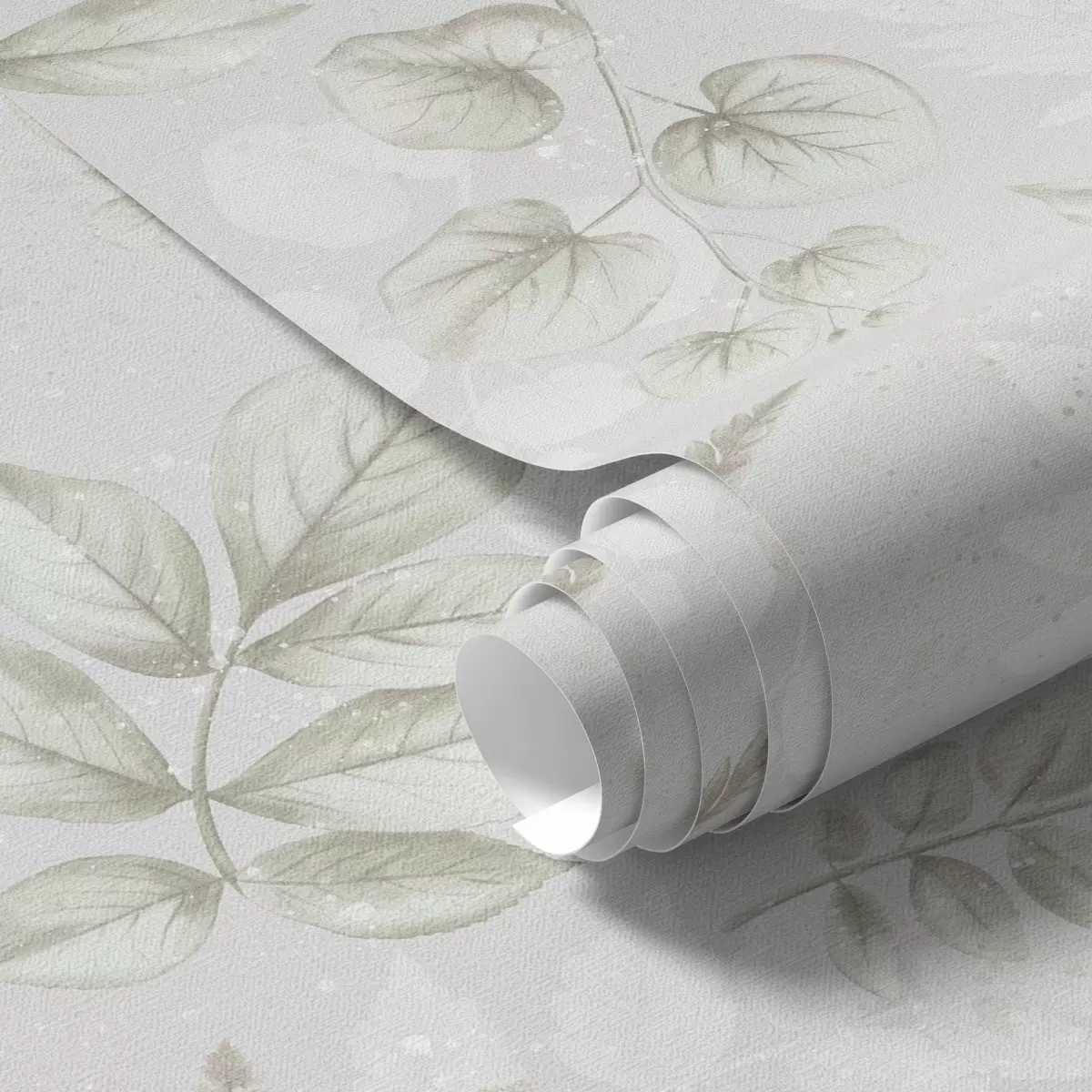 Papel pintado Ligeras hojas de acuarela con efecto salpicado sobre fondo gris Nr. a00446
