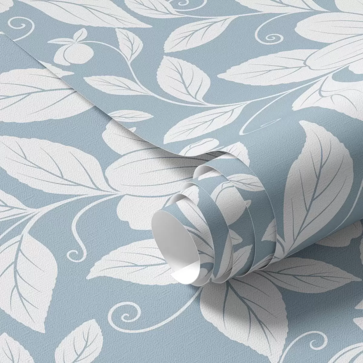 Papel pintado Contorno floral blanco sobre fondo azul pastel Nr. a00452