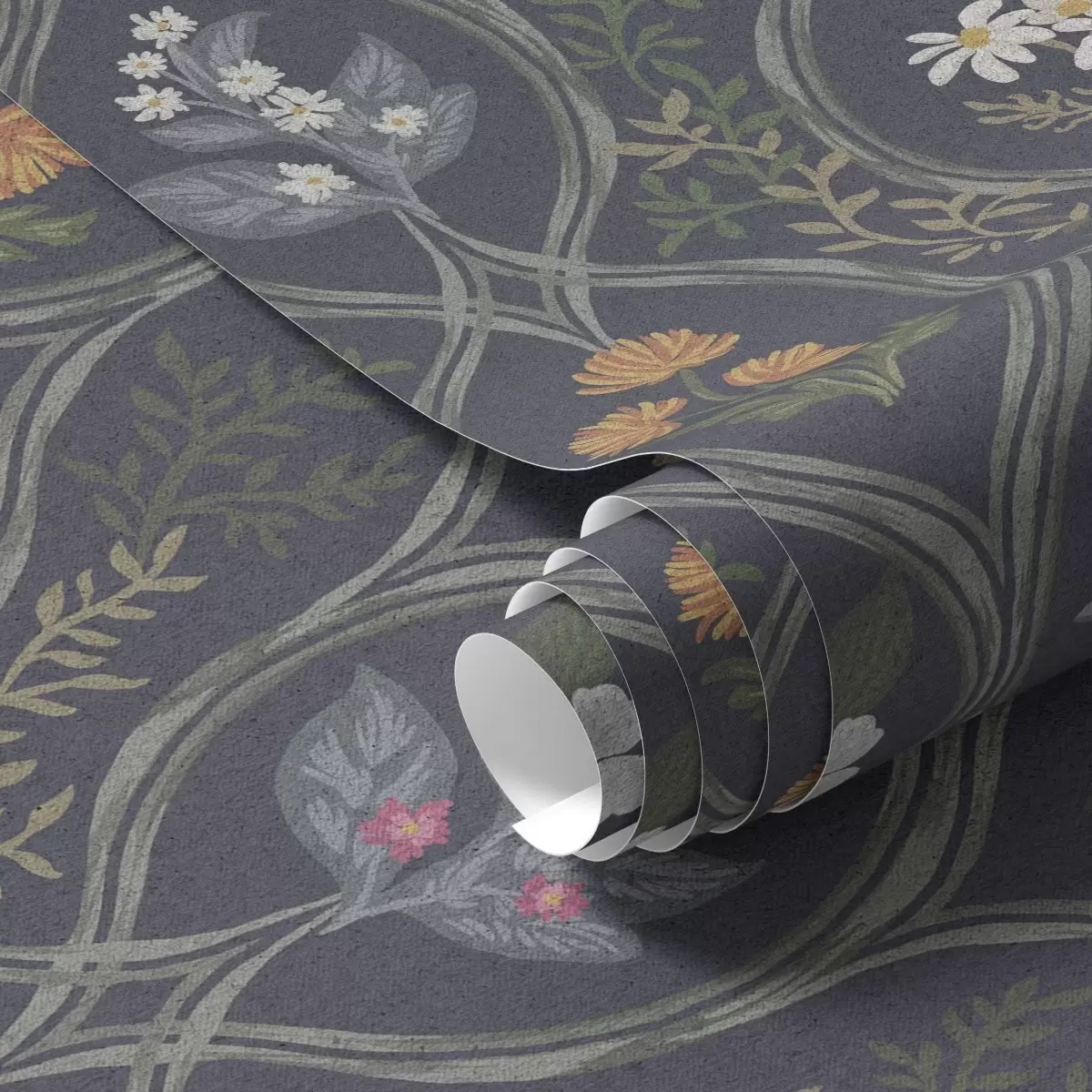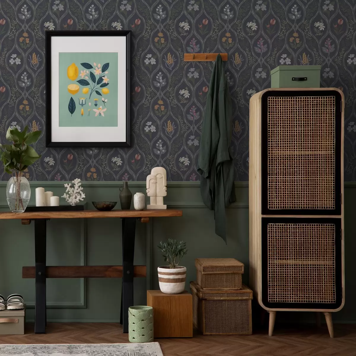 Papel pintado Marco vintage oscuro con coloridas flores de jardín Nr. a00454