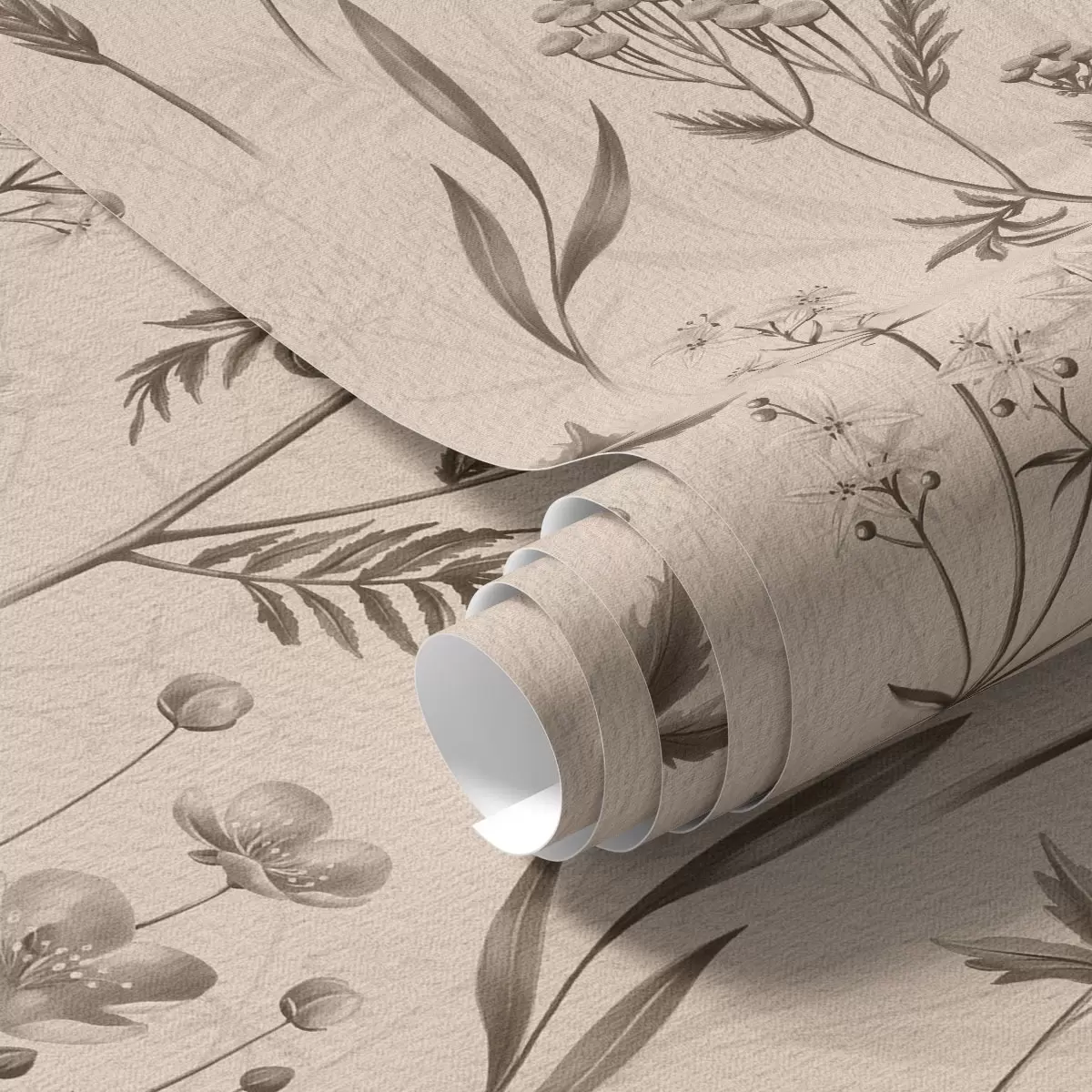 Papel pintado Flores amarillas y verdes en tonos grises-marrones Nr. a00472v1