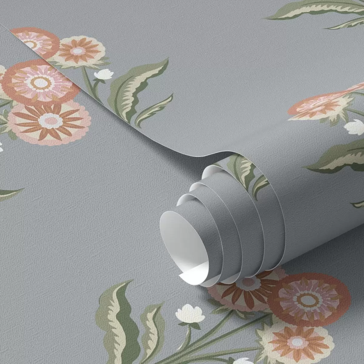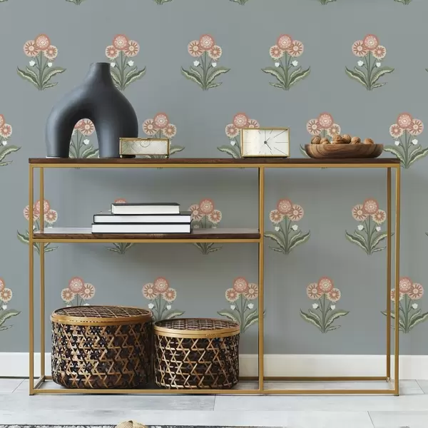 Papel pintado Flores estilizadas sobre fondo gris azulado, paleta cálida Nr. a00494