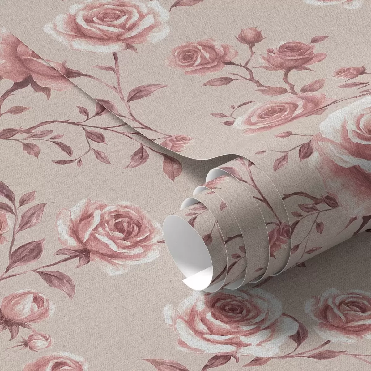 Papel pintado Rosas en polvo sobre fondo beige — estampado vintage Nr. a00497