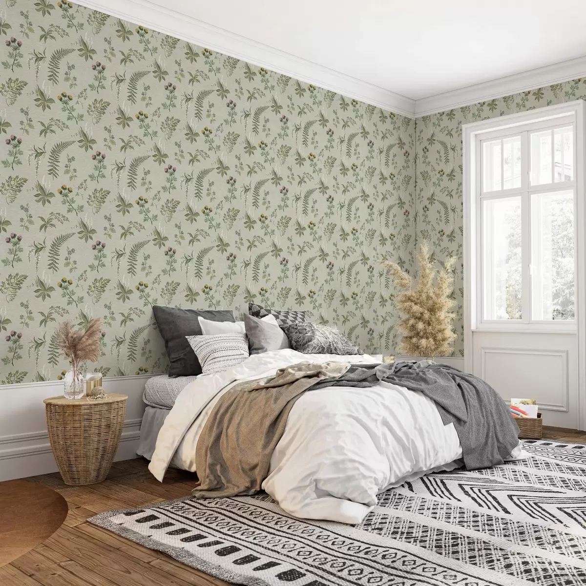 Papel pintado Hierbas y helechos botánicos en gris verdoso pálido Nr. a00498