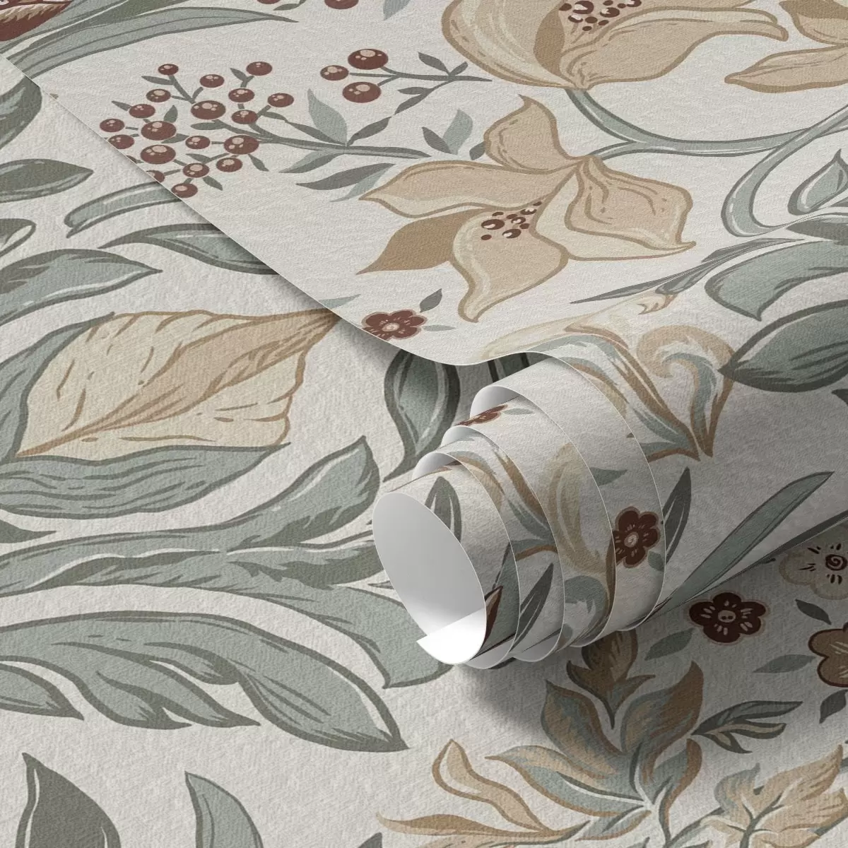 Papel pintado Lirios decorativos y una mariposa sobre fondo crema a00500
