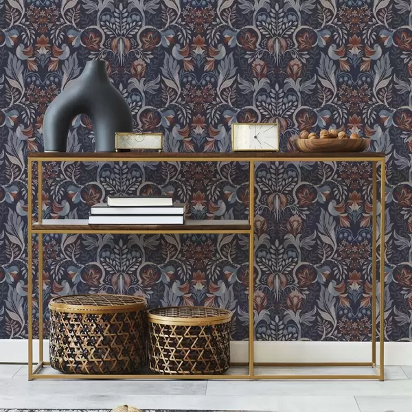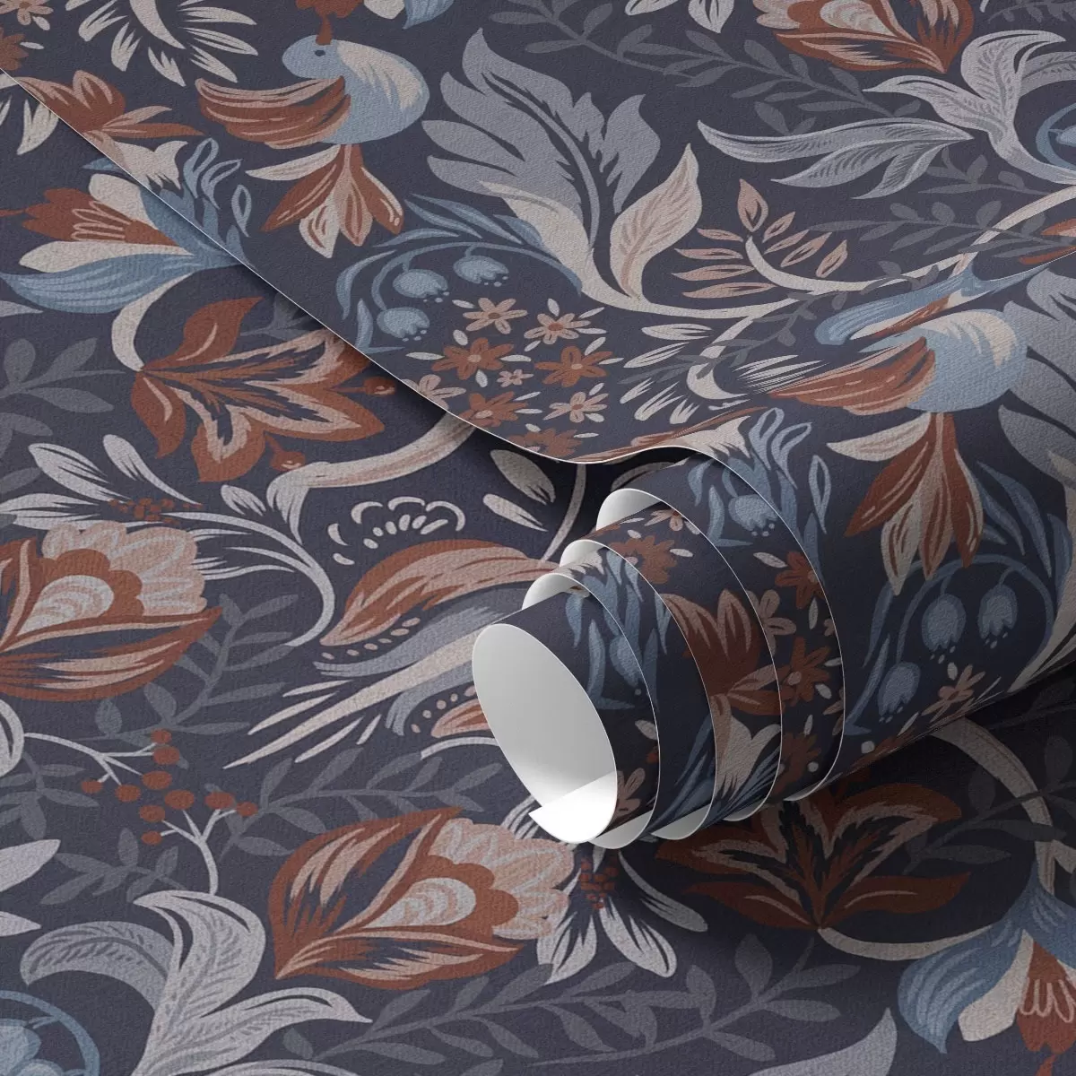 Papel pintado Flores y pájaros populares sobre fondo azul oscuro Nr. a00502