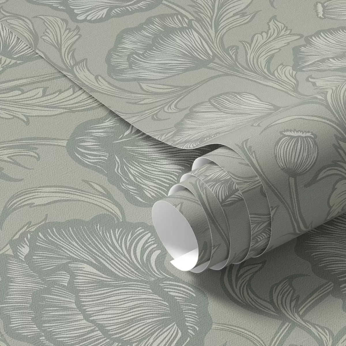 Papel pintado Amapolas en línea sobre un fondo gris verdoso Nr. a00572v1