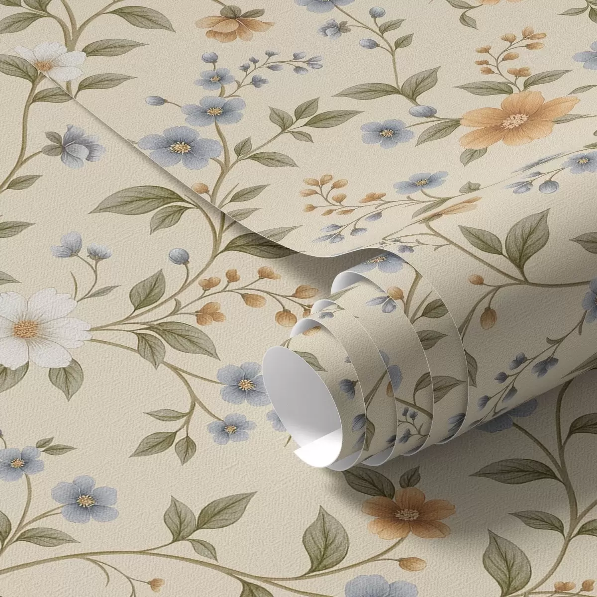 Papel pintado Ramas florales con flores azules y melocotón Nr. a00575
