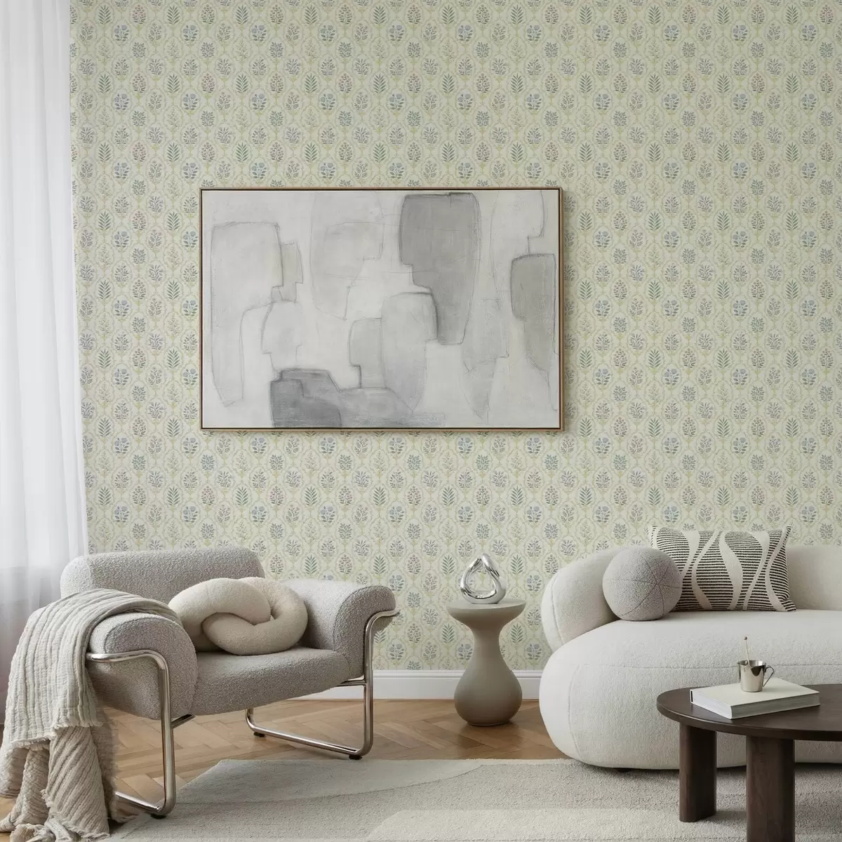 Papel pintado Medallones botánicos en celosía, tonos pastel Nr. a00579