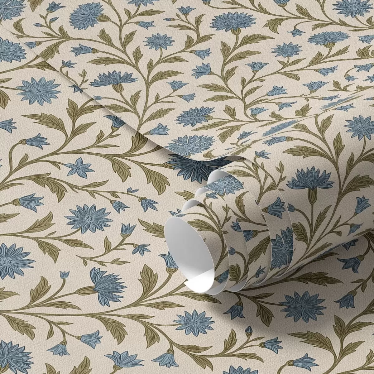 Papel pintado Acianos y brotes sobre fondo beige Nr. a00588
