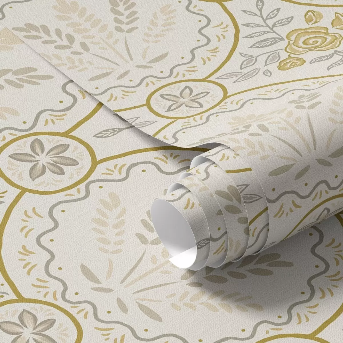 Papel pintado Adorno retro con trigo y rosas en dorado Nr. a00595