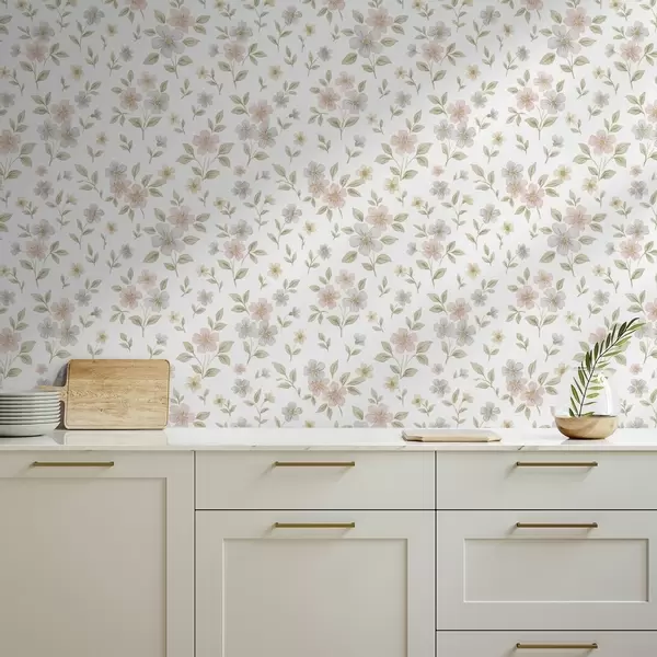 Papel pintado Pequeñas flores acuareladas en tonos pastel sobre fondo blanco Nr. a00596v1