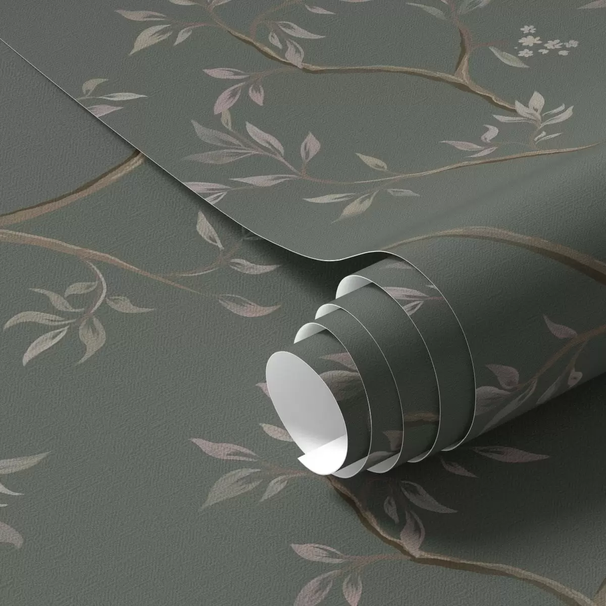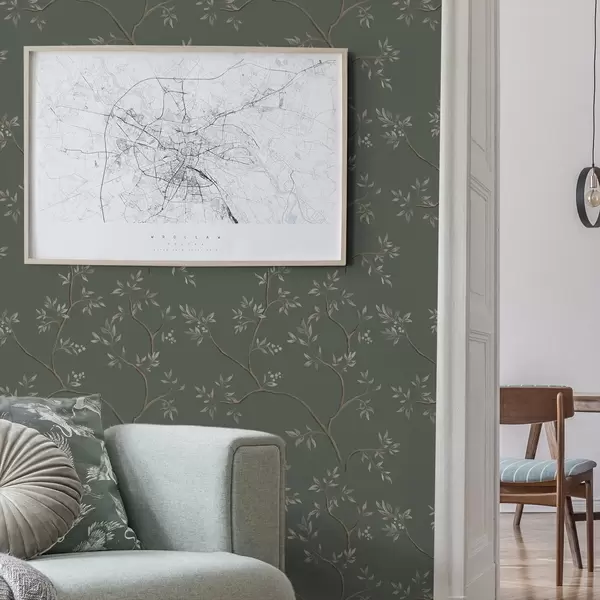 Papel pintado Delicadas ramas frondosas sobre un fondo verde oscuro Nr. a00597