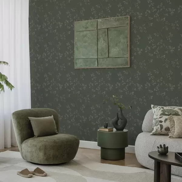 Papel pintado Delicadas ramas frondosas sobre un fondo verde oscuro Nr. a00597