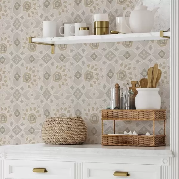 Papel pintado Patrón geométrico de mosaico en tonos beige cálidos Nr. a00606