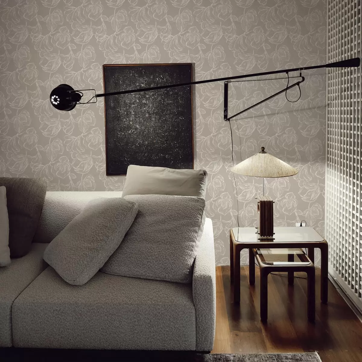 Papel pintado Flores con contorno en crema sobre un fondo marrón grisáceo cálido Nr. a00625v2