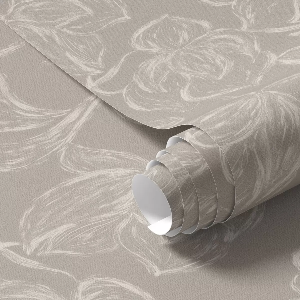 Papel pintado Flores con contorno en crema sobre un fondo marrón grisáceo cálido Nr. a00625v2
