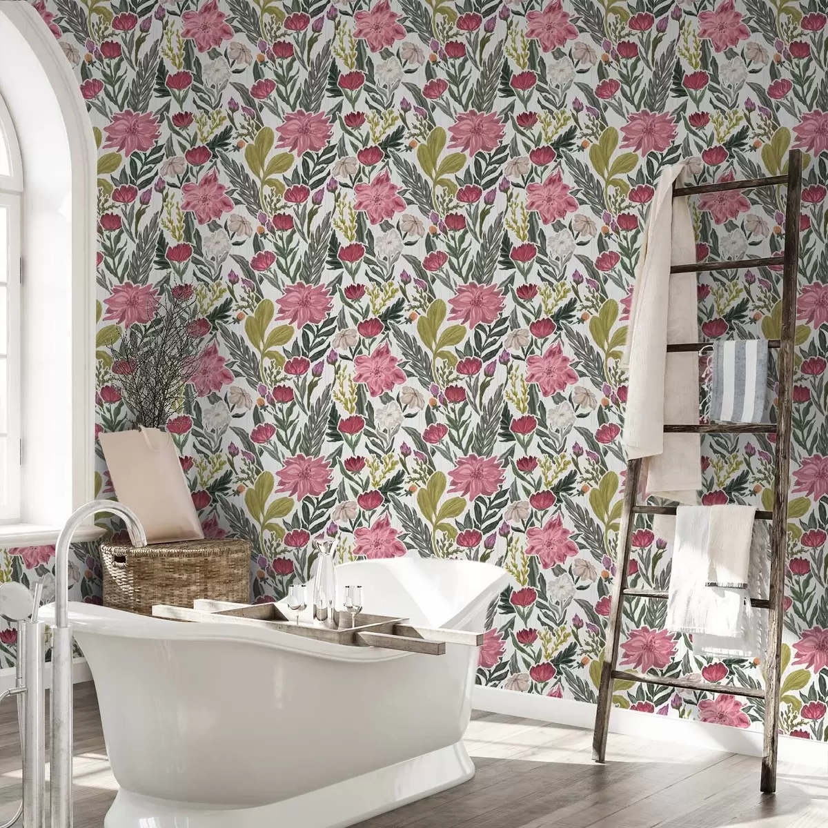 Papel pintado Exuberantes flores rosas y crema sobre fondo blanco, textura impasto Nr. a00629v1