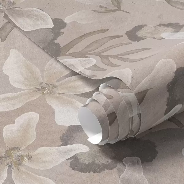Papel pintado Grandes flores beige con manchas abstractas de acuarela Nr. a00635
