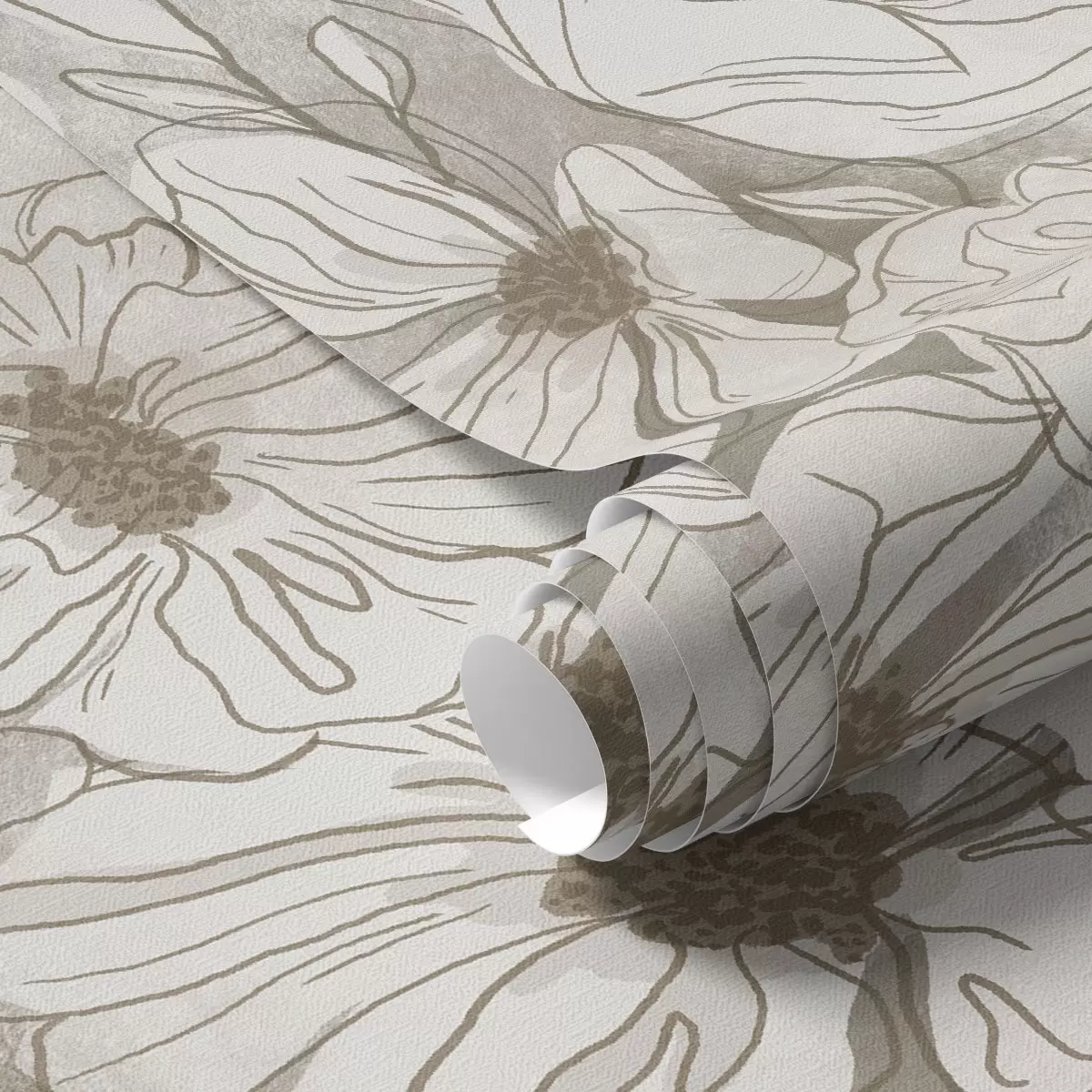 Papel pintado Flores lineales en una paleta monocromática de tonos beige y gris Nr. a00636