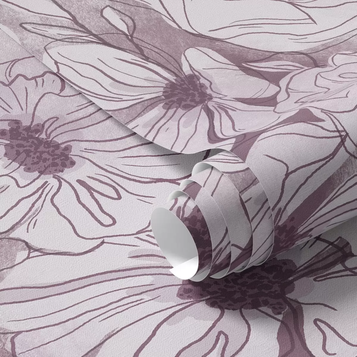 Papel pintado Flores lineales en una fresca paleta de colores lila y rosa Nr. a00636v1