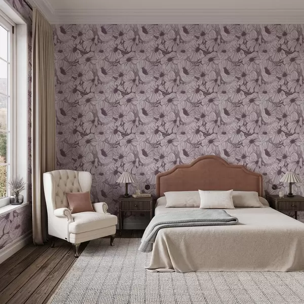 Papel pintado Flores lineales en una fresca paleta de colores lila y rosa Nr. a00636v1