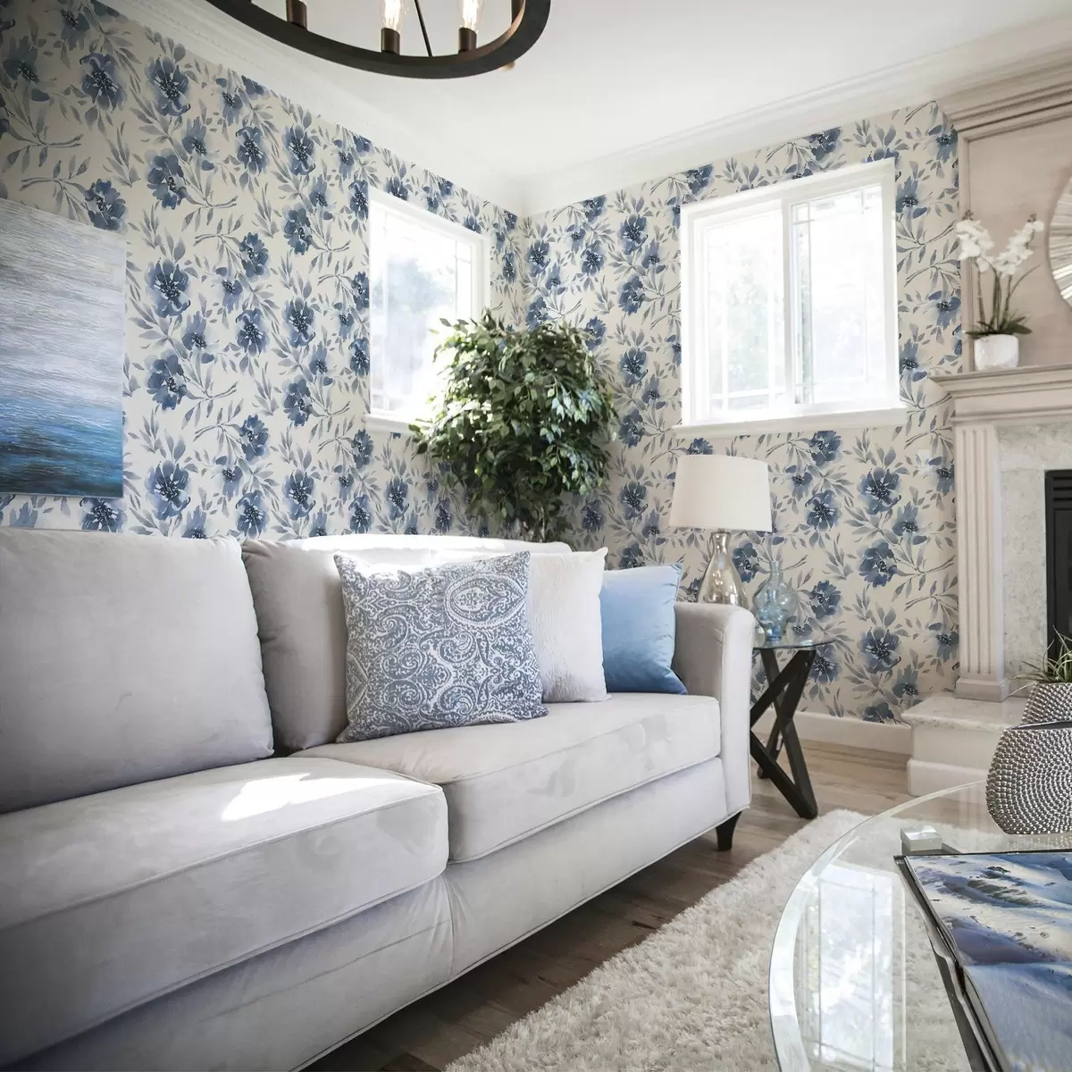 Papel pintado Peonías índigo pintadas con acuarela sobre fondo blanco Nr. a00641