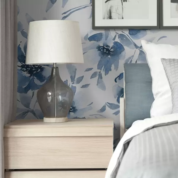 Papel pintado Peonías índigo pintadas con acuarela sobre fondo blanco Nr. a00641