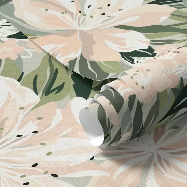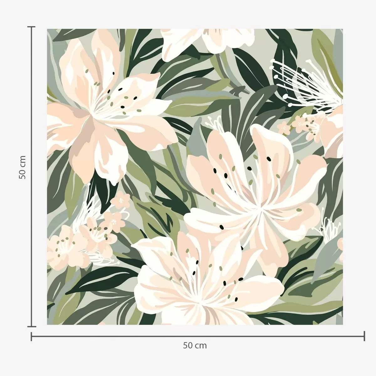Papel pintado Grandes flores color crema sobre fondo verde claro Nr. a00646