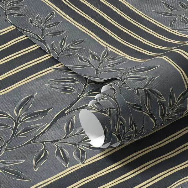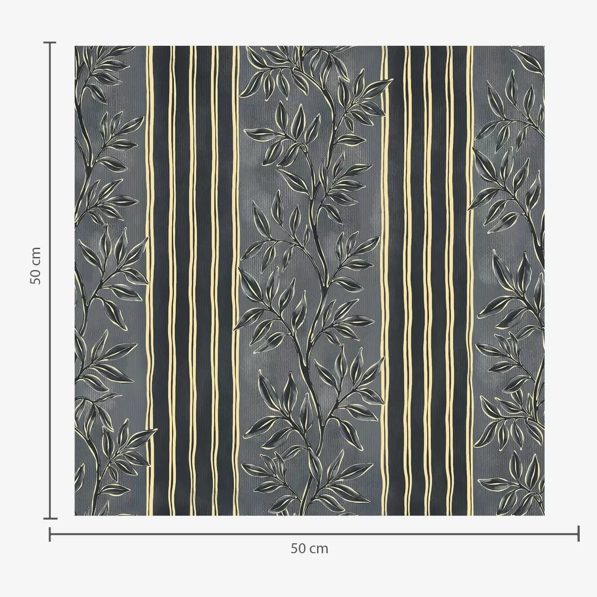 Papel pintado Rayas verticales con motivos botánicos en tonos oscuros Nr. a00648