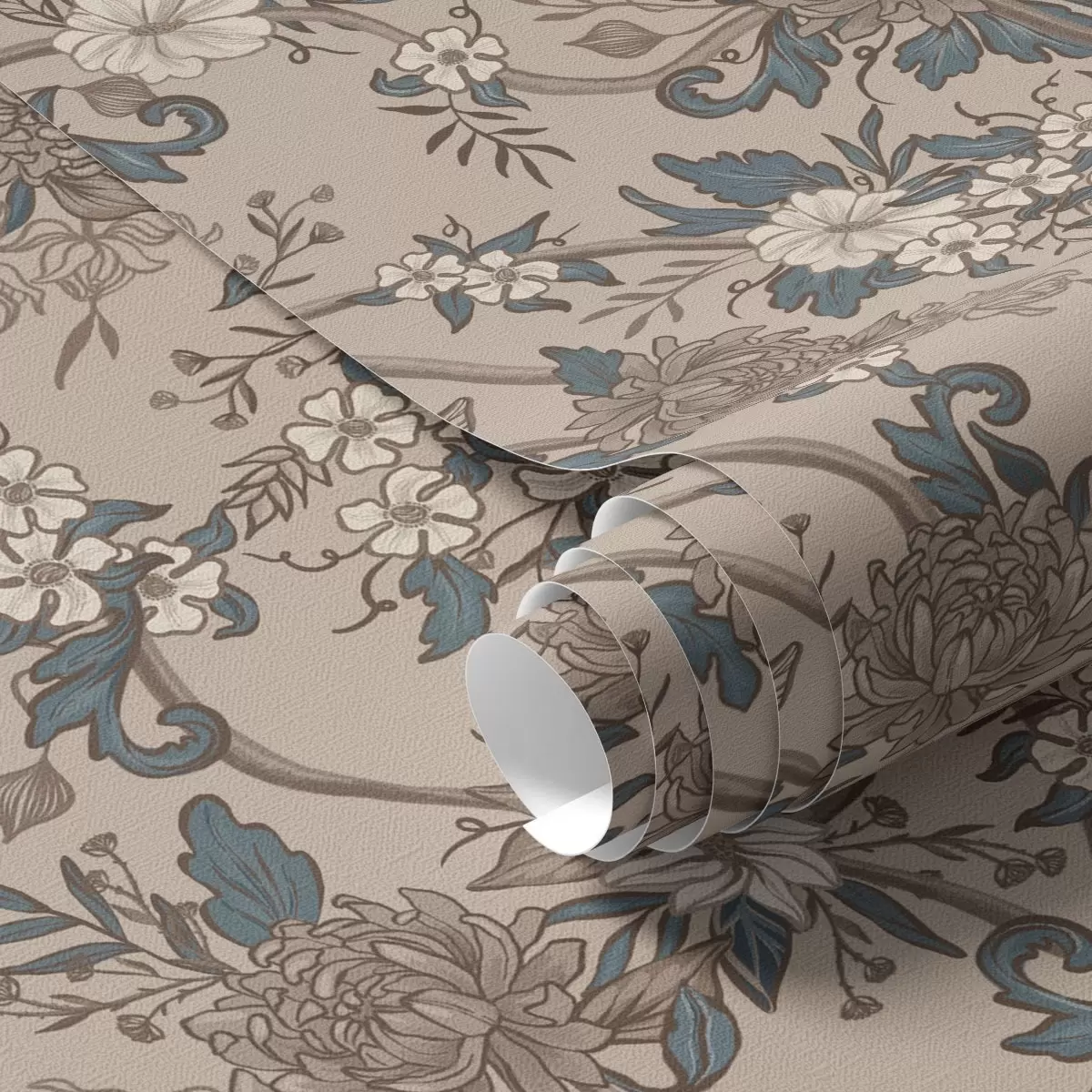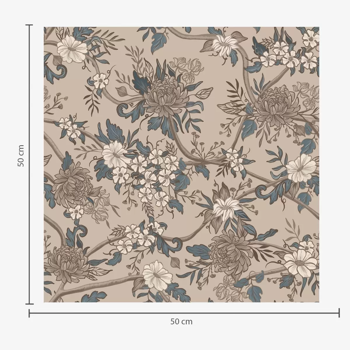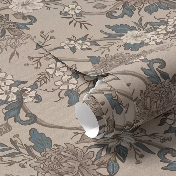 Papel pintado Flores grandes con hojas estampadas sobre un fondo beige cálido Nr. a00649