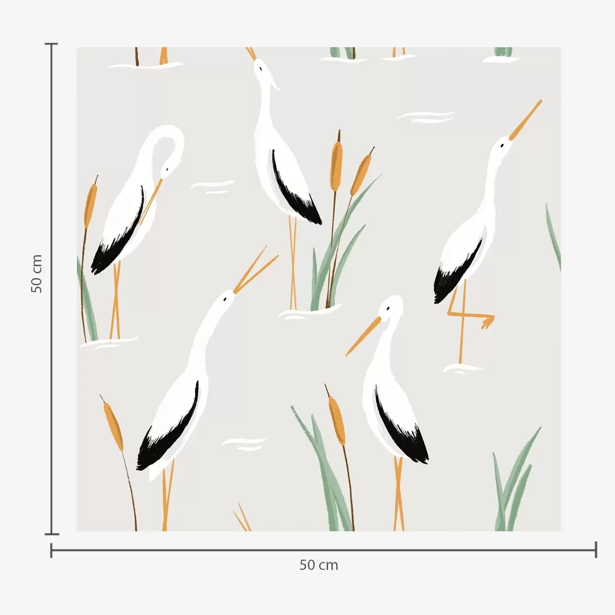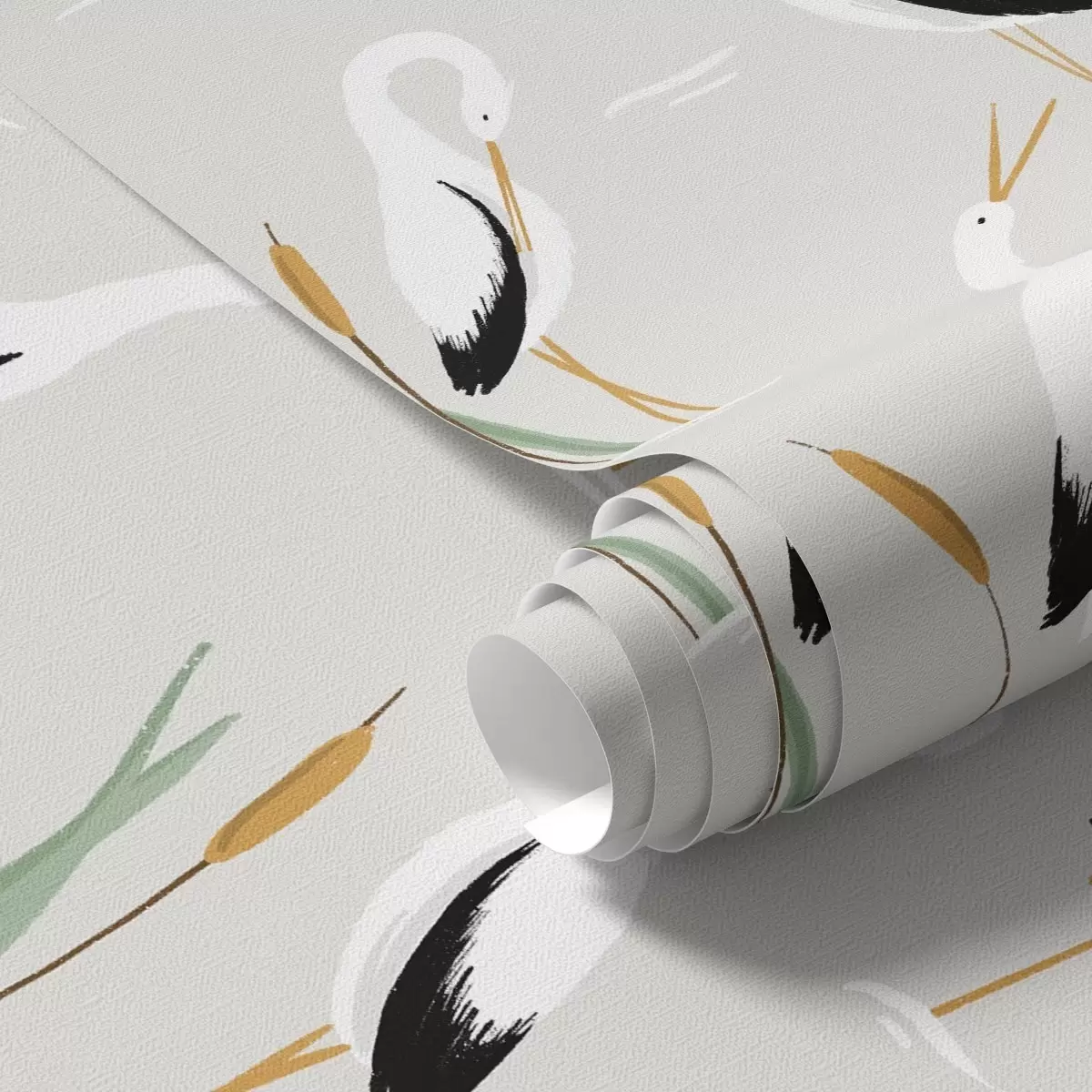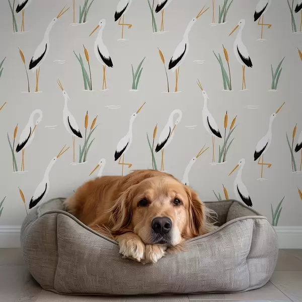 Papel pintado Garzas entre juncos sobre un fondo gris claro Nr. a00650