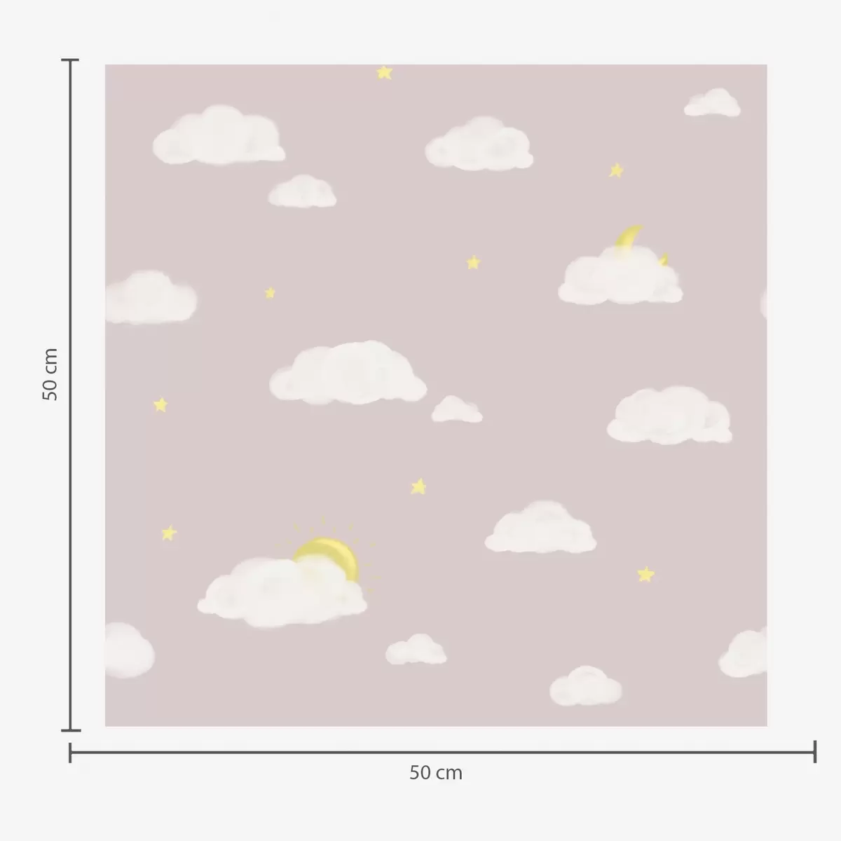 Papel pintado Nubes suaves, estrellas y sol sobre un fondo gris rosáceo Nr. a00652v2