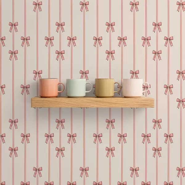 Papel pintado Cintas verticales con lazos, fondo marfil Nr. a00653