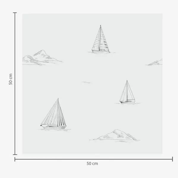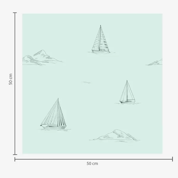 Papel pintado Bocetos de yates e islas, fondo azul Nr. a00654v3