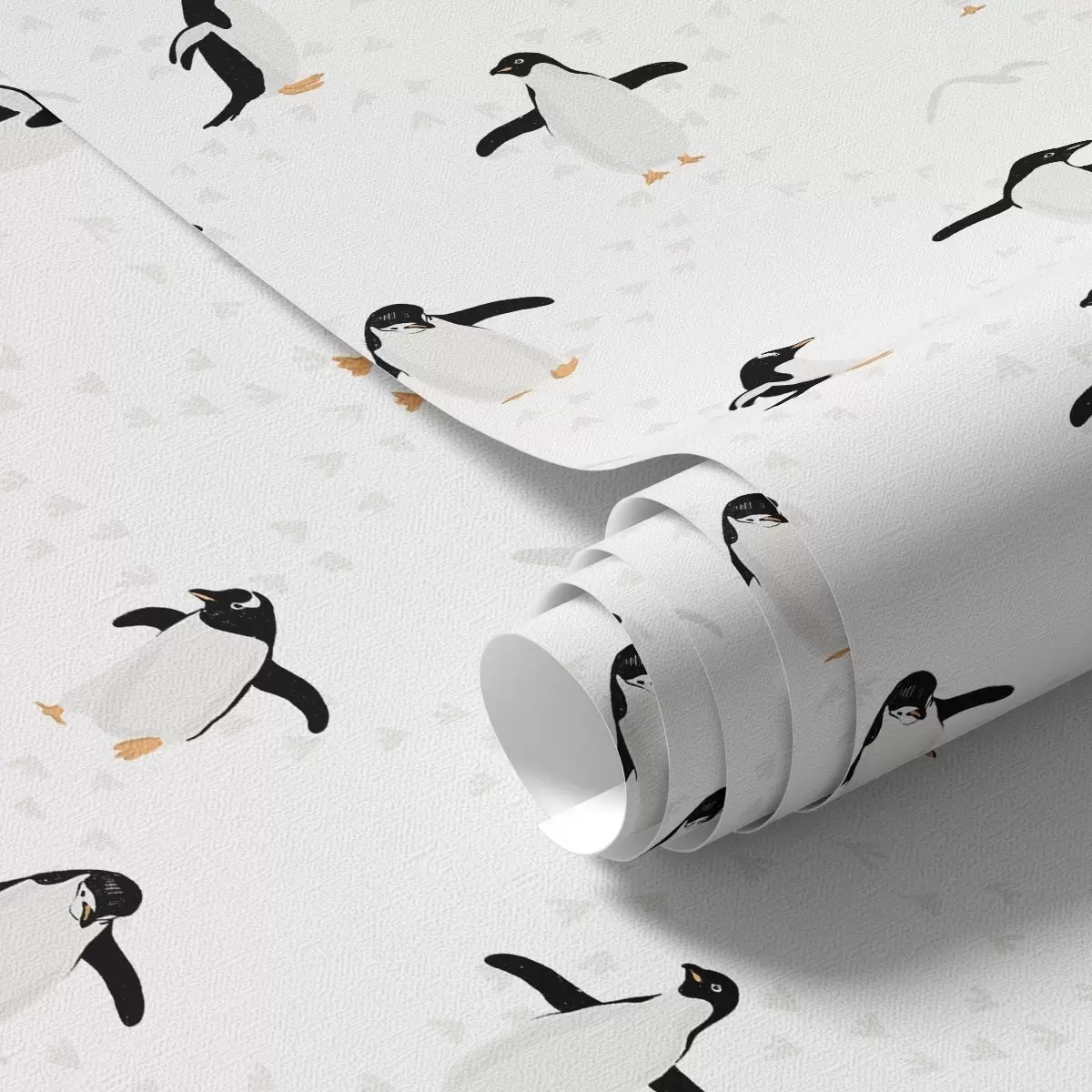 Papel pintado Pingüinos sobre fondo blanco con huellas Nr. a00655v1